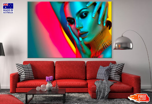 Fashion Woman Over Colourful Vivid Background Print 100% Australian Made