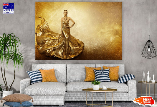 Fashion Woman with Flying Gold Dress Photograph Print 100% Australian Made