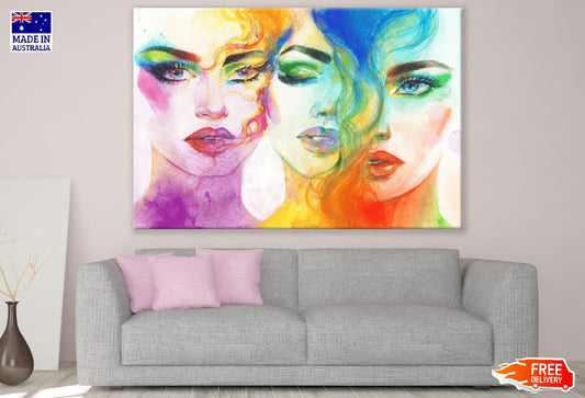 Makeup Faces Collage Abstract Watercolor Painting Print 100% Australian Made