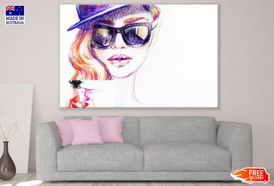 Woman Face with Sunglasses Fashion Watercolor Painting Print 100% Australian Made