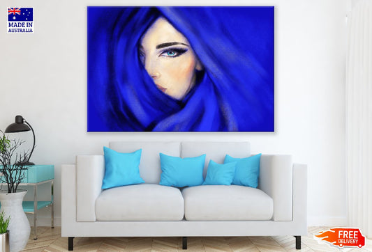 Blue Scarf Woman Face Fashion Pastel Painting Print 100% Australian Made