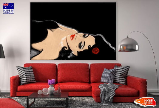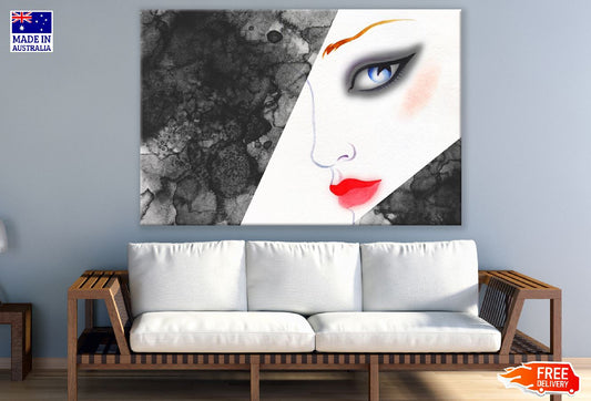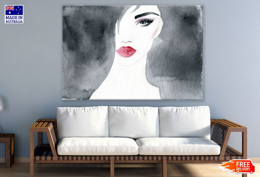 Beautiful Woman Face B&W Red Lips Watercolor Painting Print 100% Australian Made
