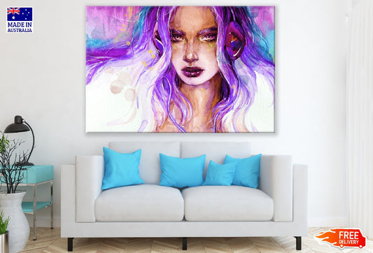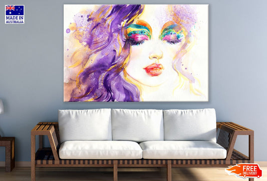 Makeup Woman Face Purple Abstract Watercolor Painting Print 100% Australian Made