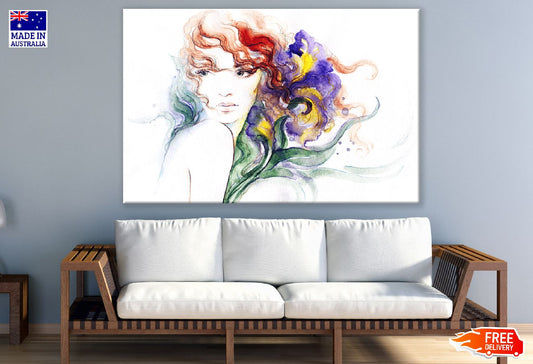 Woman Face & Colorful Hair Abstract Watercolor Painting Print 100% Australian Made