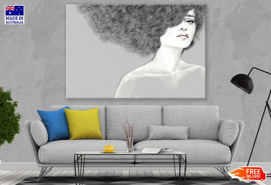 Fashion Girl With Hair B&W Abstract Watercolor Painting Print 100% Australian Made