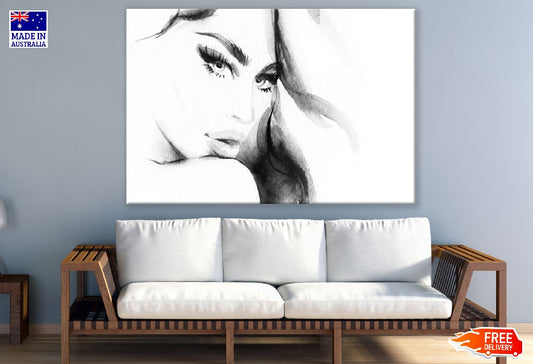 Young Woman Closeup Face B&W Watercolor Painting Print 100% Australian Made