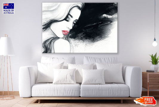 Fashion Woman Face with Red Lips B&W Watercolor Painting Print 100% Australian Made