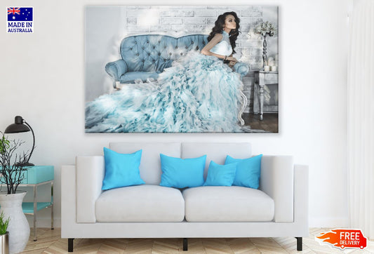 Fashionable Dress of Lady in Sofa Painting Print 100% Australian Made