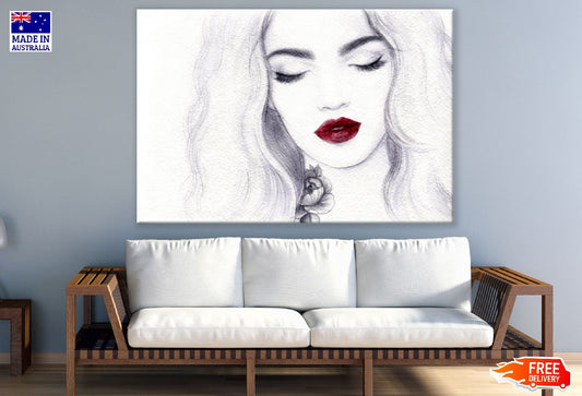 Makeup Woman Face with Red Lips B&W Watercolor Painting Print 100% Australian Made