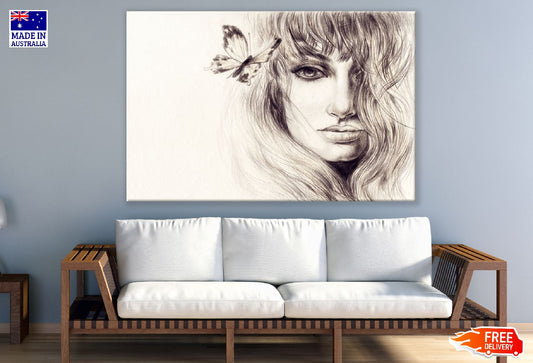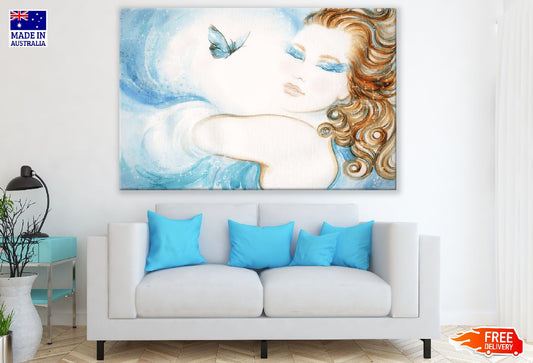 Woman Face & Butterfly Painted Illustration Print 100% Australian Made