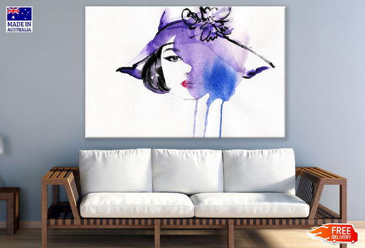 Woman Face & Purple Hat Abstract Watercolor Painting Print 100% Australian Made