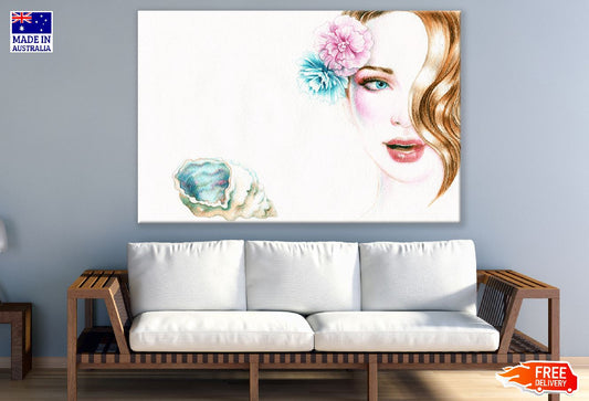 Beautiful Woman with Shell and Flowers Abstract Painting Print 100% Australian Made