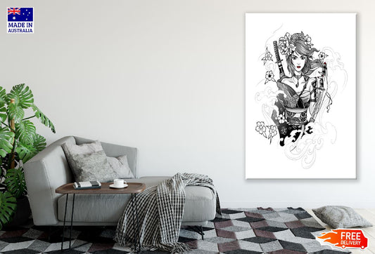 Japanese Woman Warrior with Katana in Hand B&W Digital Art Print 100% Australian Made