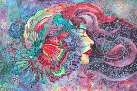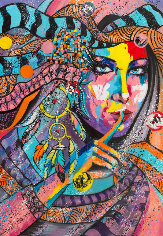 Square Canvas Girl with Headdress Painting High Quality Print 100% Australian Made