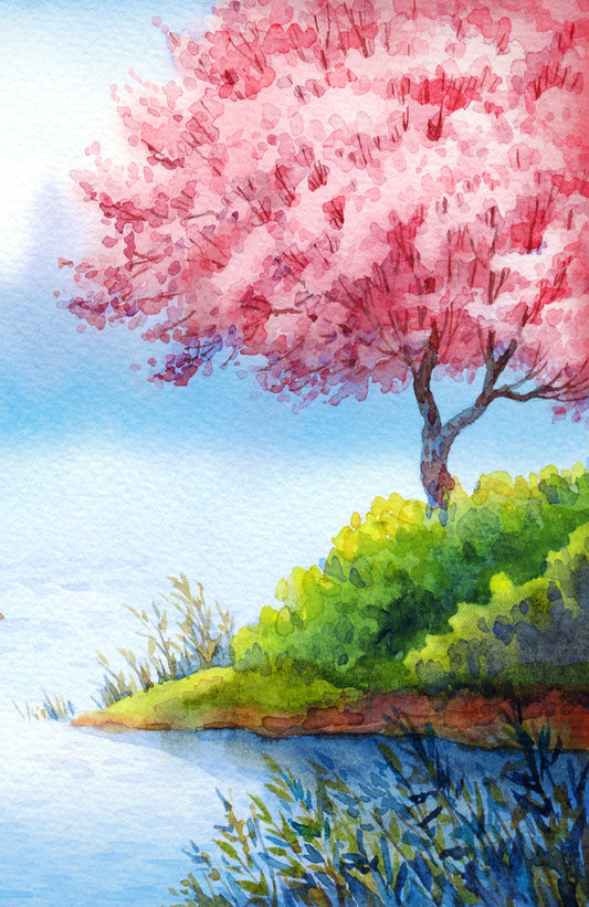 Colorful Lake & Trees Watercolor Painting Print 100% Australian Made