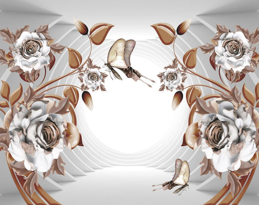 Brown & White Flowers & Butterflies 3D Design Print 100% Australian Made