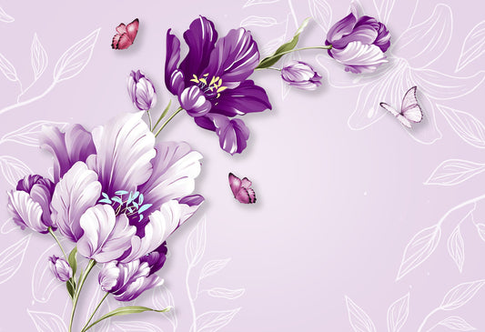 Purple Floral & Butterfly Painting Design Print 100% Australian Made