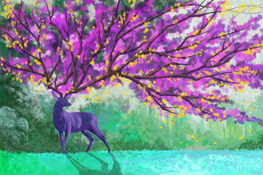 Wallpaper Murals Peel and Stick Removable Flower Tree on Deer Head Painting High Quality