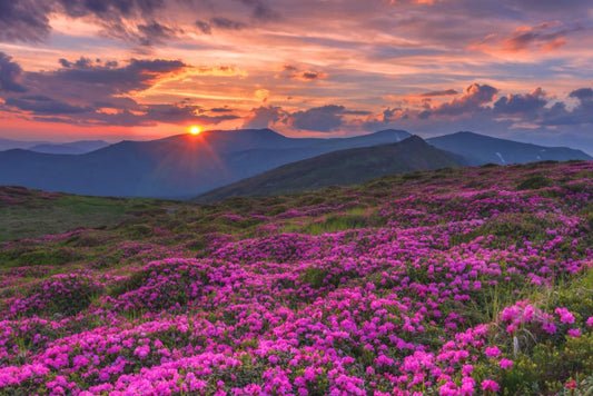 Wallpaper Murals Peel and Stick Removable Nature View with Flowers at Sunset High Quality
