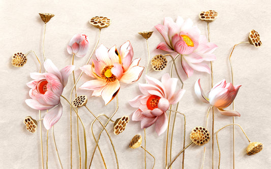 Wallpaper Murals Peel and Stick Removable Pink Gold Floral Design High Quality