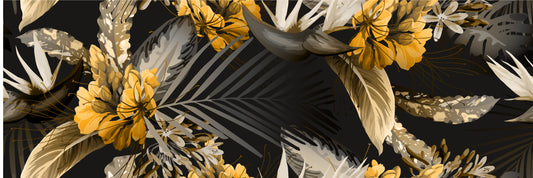 Panoramic Canvas Abstract Gold Black Floral Art High Quality 100% Australian made wall Canvas Print ready to hang