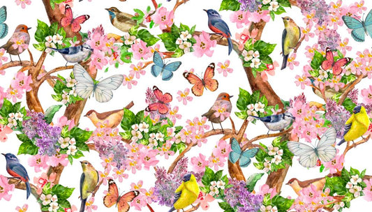 Birds & Butterflies on a Flower Tree Painting Print 100% Australian Made