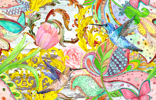Humming Birds, Butterflies & Floral Art Print 100% Australian Made