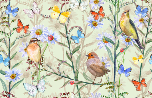Birds Buterflies on Floral Plants Field Painting Print 100% Australian Made
