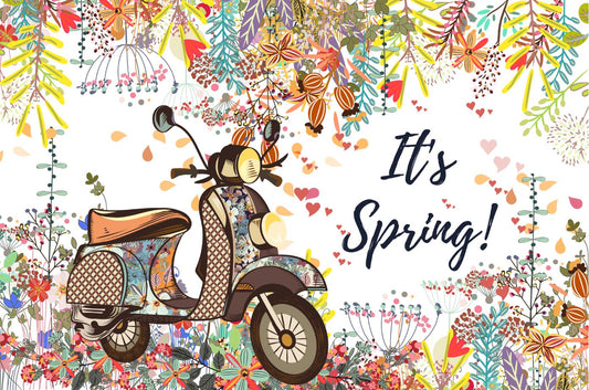 Its Spring Art with Motorcycle & Floral Vector Print 100% Australian Made
