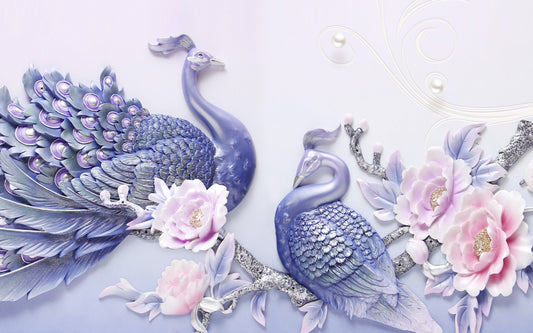 Blue Peacocks & Pink Flowers 3D Abstract Design Print 100% Australian Made