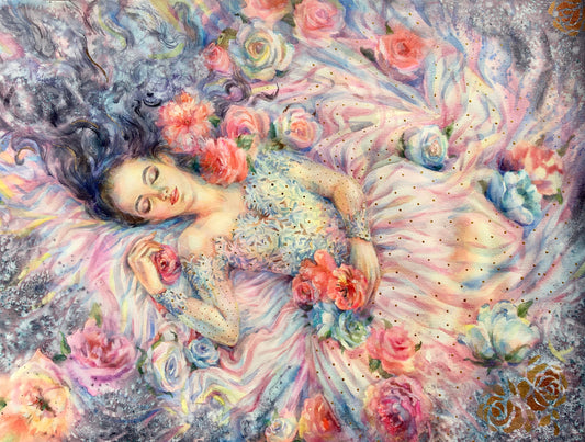 Woman Sleeping in Flowers Painting Print 100% Australian Made