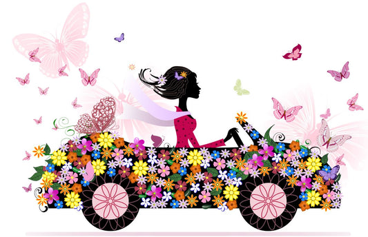 Woman Riding a Floral Car & Butterflies Art Print 100% Australian Made