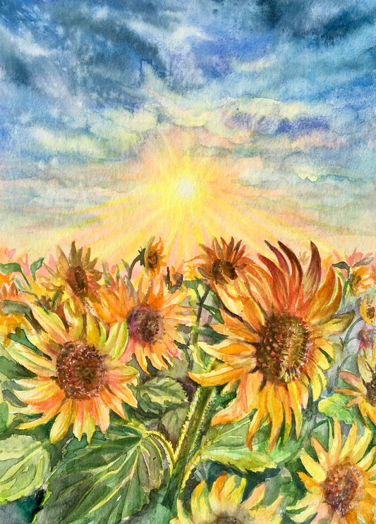 Sunrise in Sunflower Field Painting Print 100% Australian Made