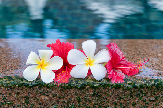 Hibiscus and Plumeria Flowers at Edge of Pool Photograph Print 100% Australian Made