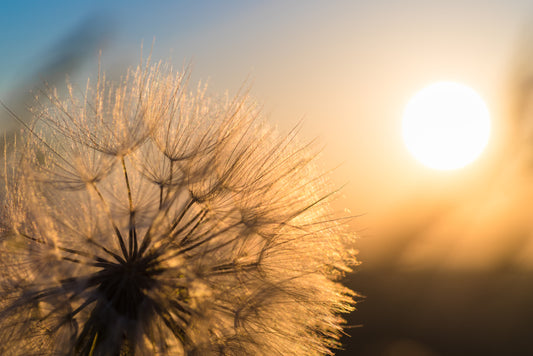 Dandelion Closeup Against Sun & Sky During the Dawn Photograph Print 100% Australian Made