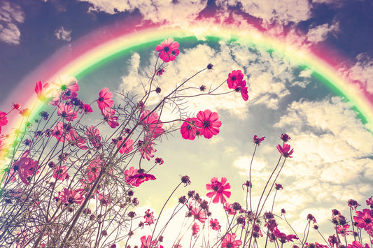 Beautiful Cosmos Flowers in Garden Rainbow Photograph Print 100% Australian Made