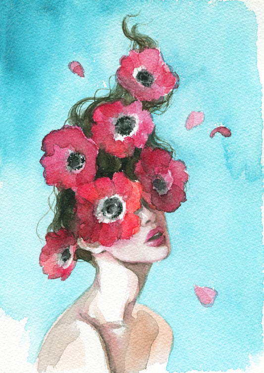 Beautiful Young Girl with Flowers Fashion Watercolor Painting Print 100% Australian Made