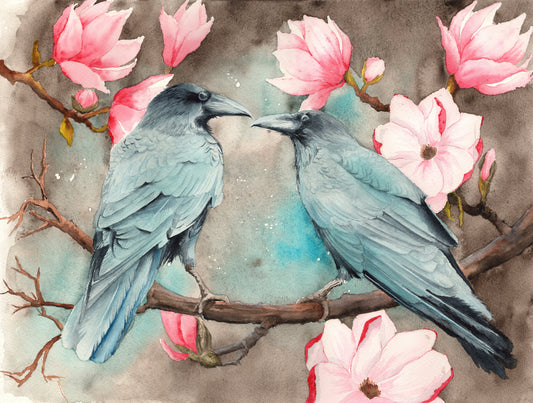 Two Ravens On The Magnolia Branch Painting Print 100% Australian Made