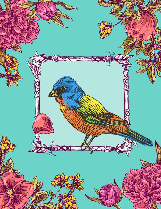 Hand Drawn Bird & Flowers Painting Print 100% Australian Made