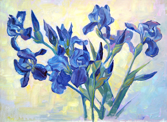 Oil Painting Blue Flowers Print 100% Australian Made