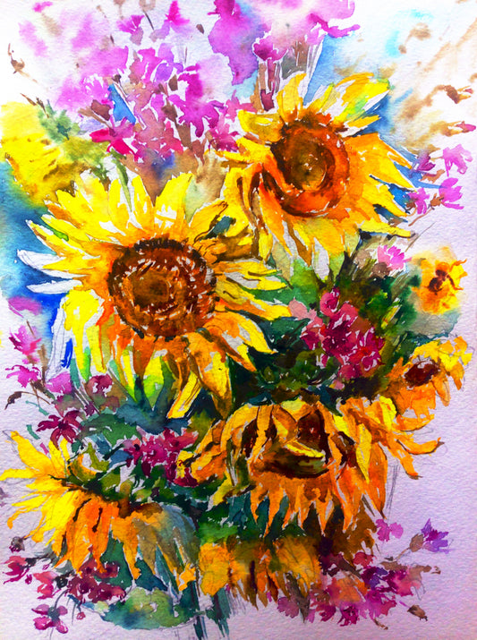 Colourful Sunflower Bunch Painting Print 100% Australian Made