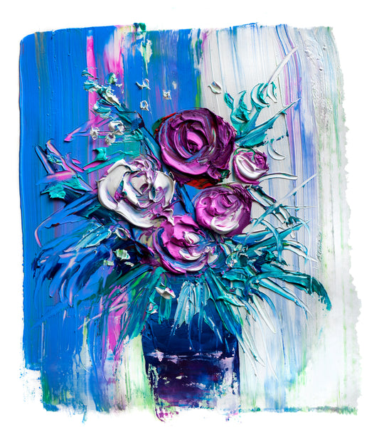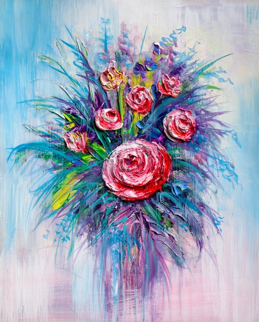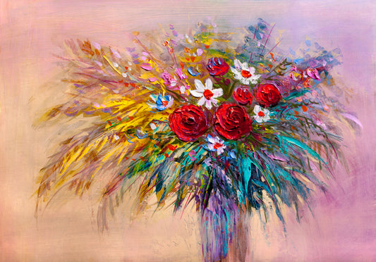 Colourful Rose Flower Bunch Painting Print 100% Australian Made