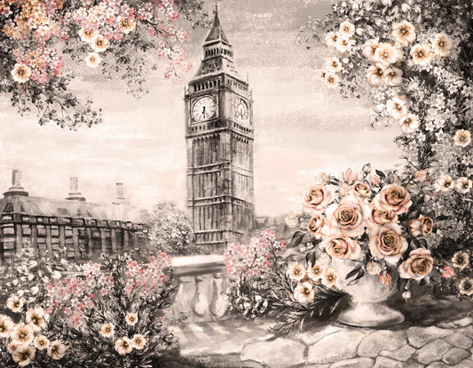 Big Ben Clock & Floral Painting Print 100% Australian Made
