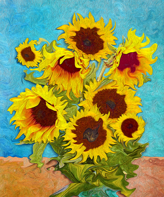 Sunflower Plant Oil Painting Print 100% Australian Made