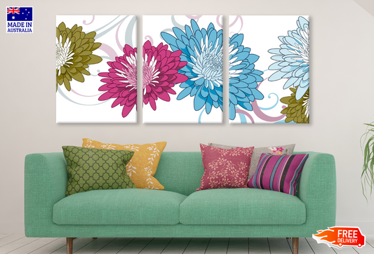 3 Set of Colourful Floral Design High Quality print 100% Australian made wall Canvas ready to hang
