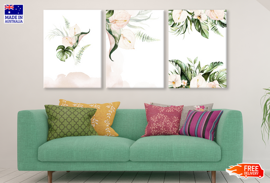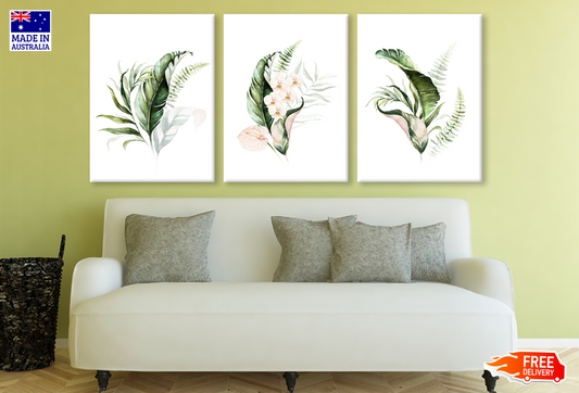 3 Set of Floral & Leaves Painting High Quality print 100% Australian made wall Canvas ready to hang