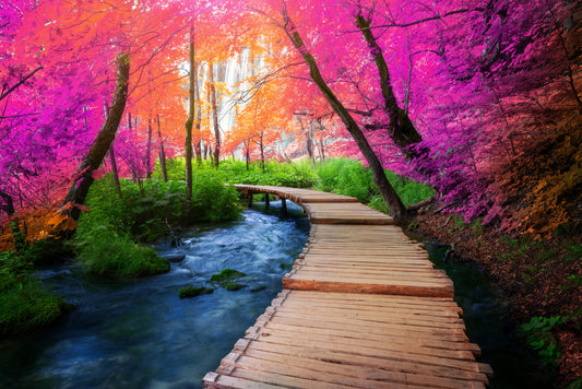 Wooden Pier Between Colourful Forest Print 100% Australian Made