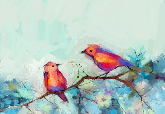 Abstract Birds on a Branch Floral Painting Print 100% Australian Made