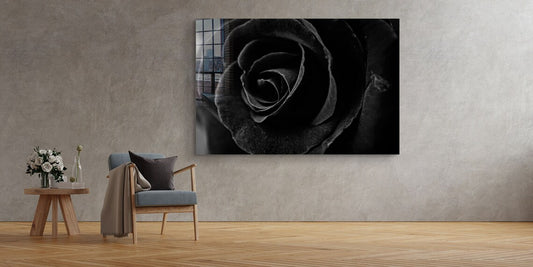 Black Rose Closeup View Print Tempered Glass Wall Art 100% Made in Australia Ready to Hang