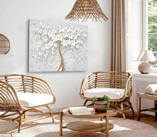 Bella Home White & Gold 3D Tree, Flower Print Canvas Ready to hang